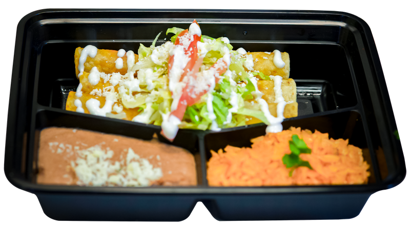 Three crispy chicken or potato flautas made with corn tortillas, topped with lettuce, queso fresco, tomato and Mexican cream, Mexican style rice and refried beans, cilantro-jalapeno salsa or guajillo red salsa. Please note: price is per person.